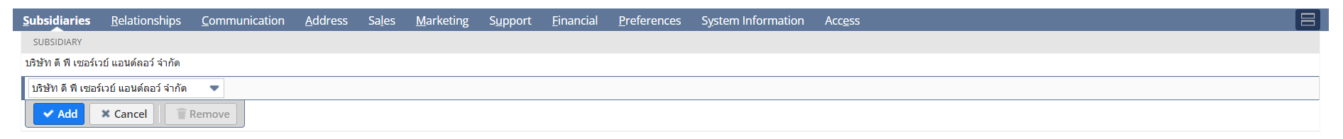 1 | Primary Subsidiary | ระบุบริษัทในกรณีใช้ OneWorld | Yes |