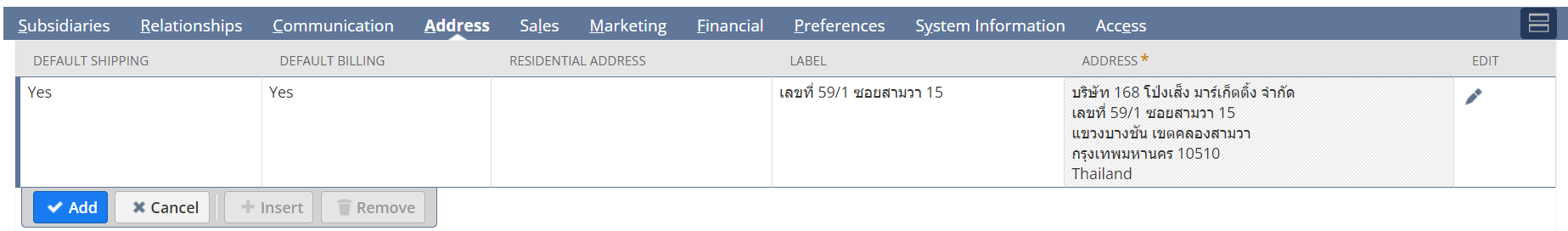 3 | Edit | กดรูปปากกาเพื่อเพิ่มที่อยู่ | Yes |