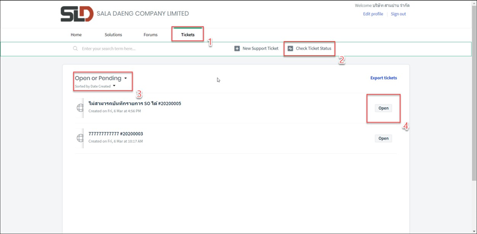 1. Open : Ticket ที่ถูกสร้างขึ้นใหม่ หรือเป็นใบที่ปิดไปแล้ว แต่มีการตอบกลับหรือโต้ตอบอีกครั้ง Ticket ก็จะถูกเปลี่ยนสถานะเป็น Open อีกครั้ง