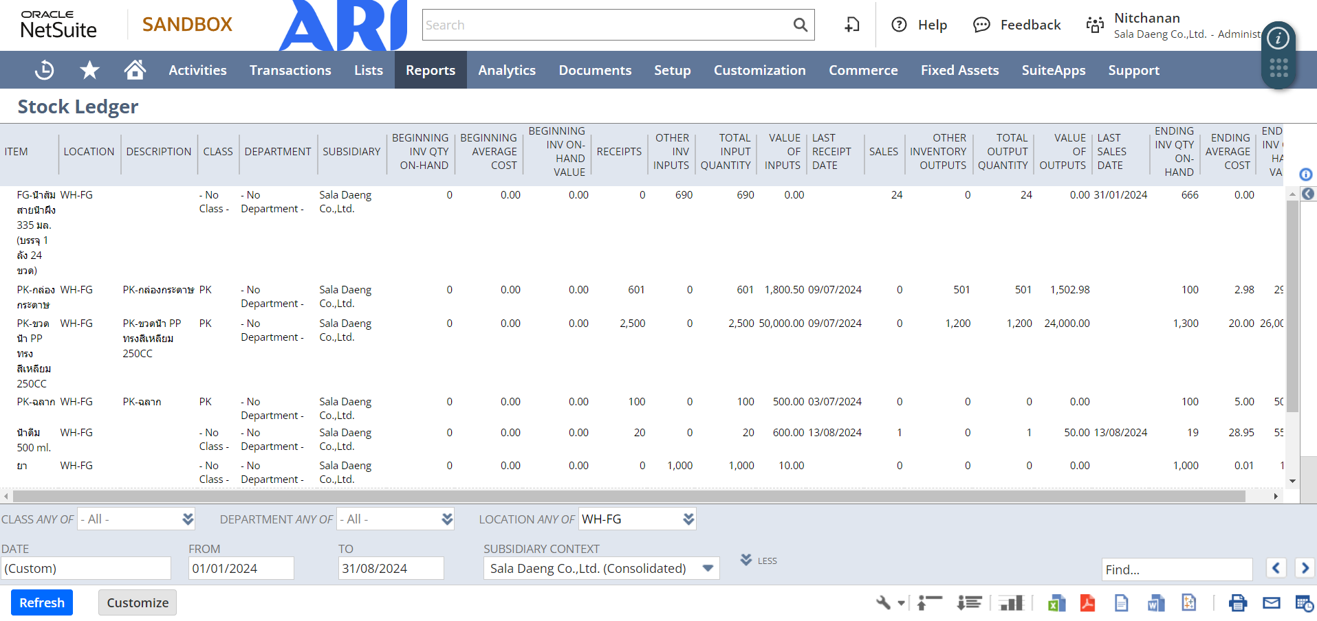 Menu Path: Report > Inventory/Items > Stock Ledger