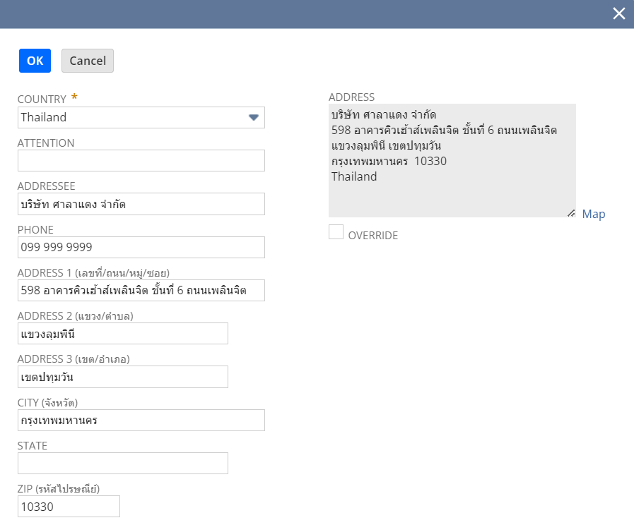 5 | Address 1 (เลขที่/ถนน/หมู่/ซอย) | ระบุที่อยู่ 1 (เลขที่/ถนน/หมู่/ซอย)