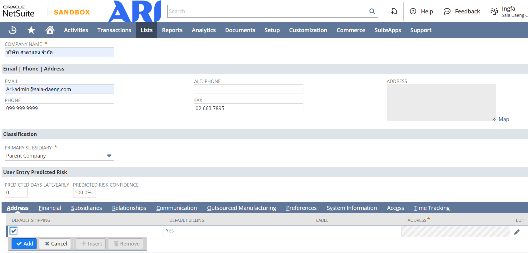 1 | Primary Subsidiary | ระบุบริษัทในกรณีใช้ OneWorld | Yes |