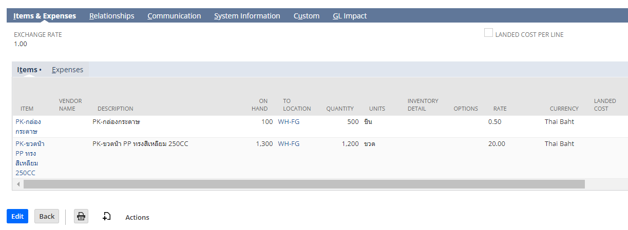 10 | Inventory Detail | ระบุล็อตสินค้าที่รับเข้า | Yes |