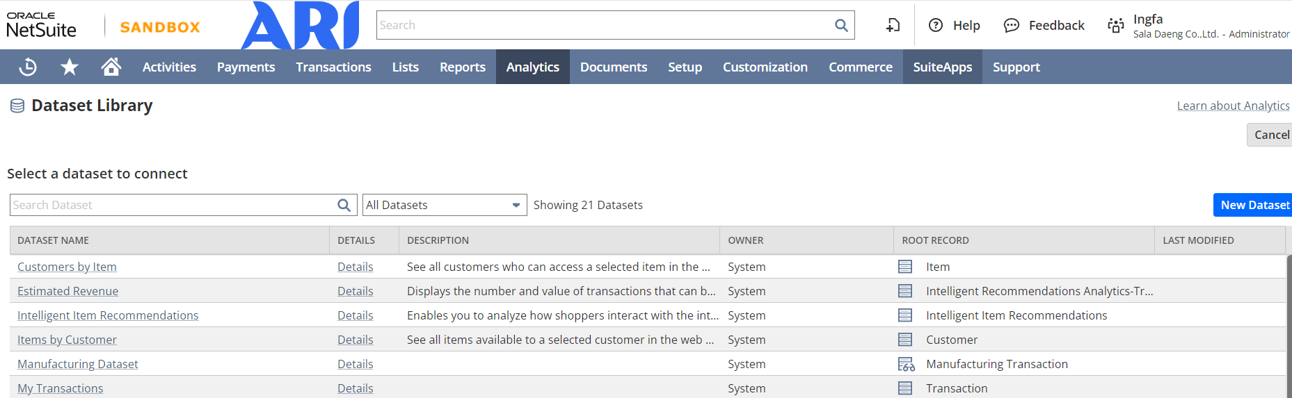 1 | Dataset Name | เลือก Data set ที่ต้องการนำไปสร้าง Analytics | Yes |