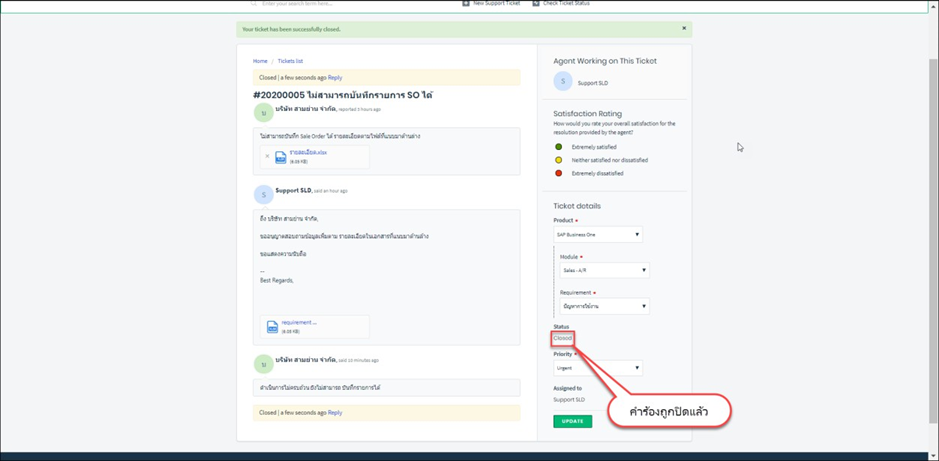 คำร้องถูกเปลี่ยนสถานะเป็น Closed | |||