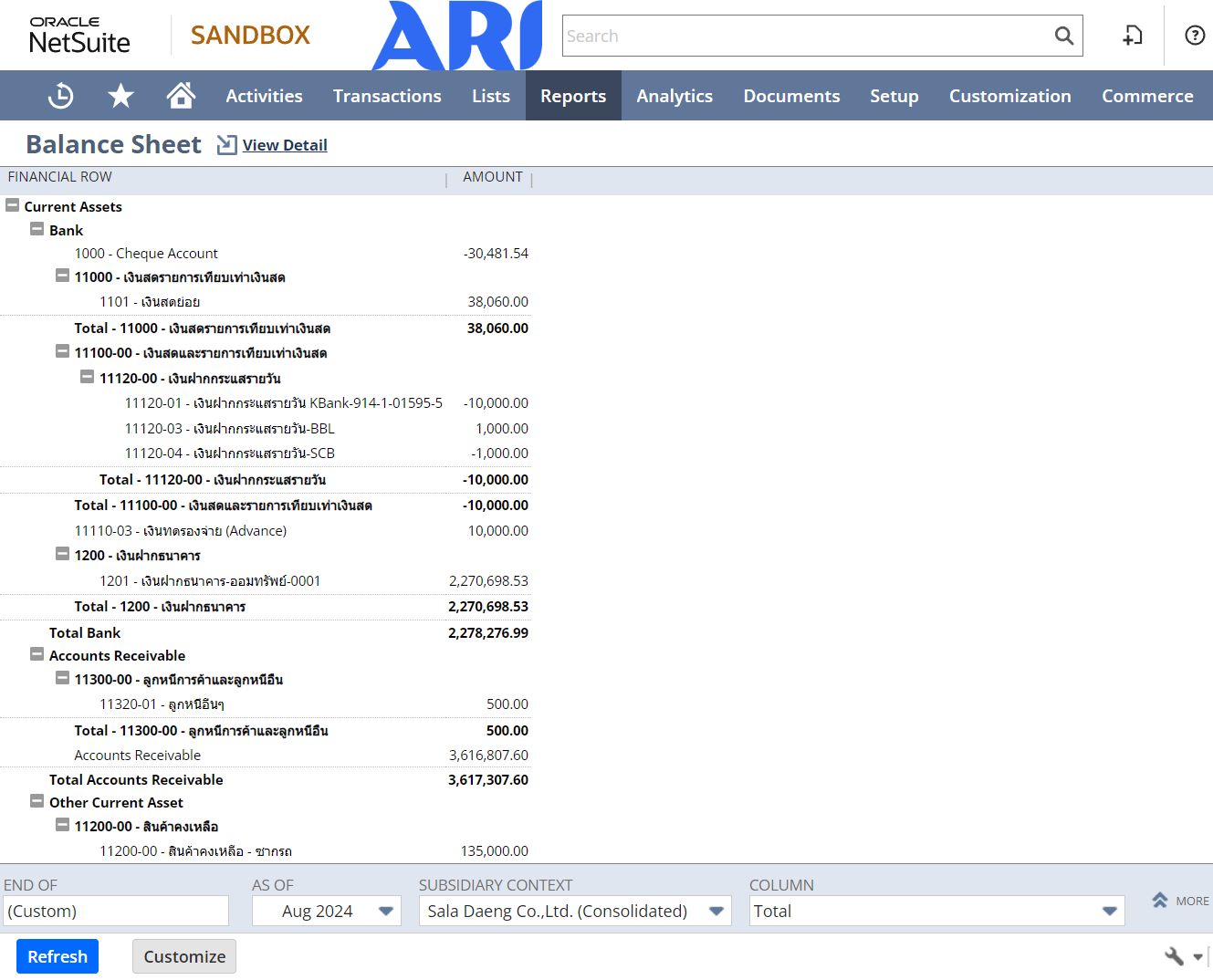 2. Balance Sheet Report- รายงานงบแสดงฐานะทางการเงิน (งบดุล)
