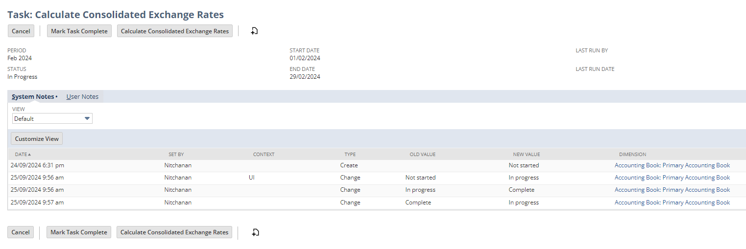 หากการอัปเดตอัตราแลกเปลี่ยนรวมเสร็จสมบูรณ์แล้ว ให้คลิก Mark Task Complete