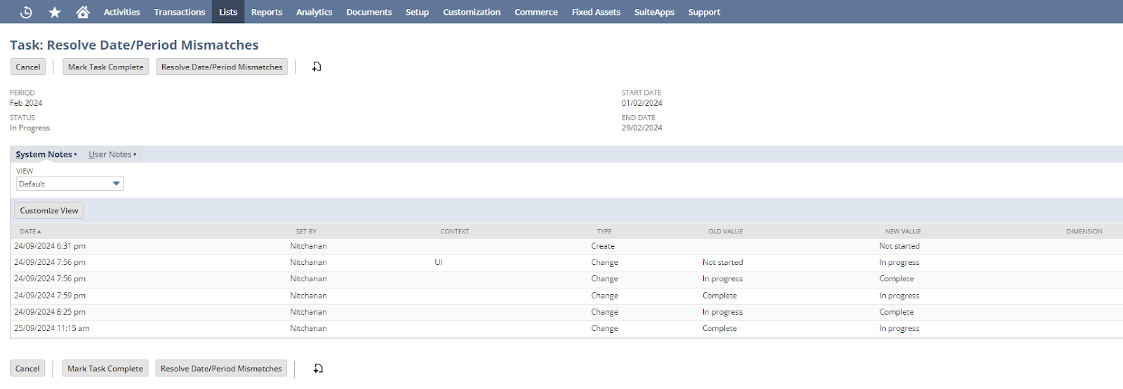 Task : Resolve Date/Period Mismatches